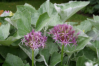 A few other gems caught my eye today. The silver foliage is Petasites paradoxus and is the perfect foliage for Allium christophii.