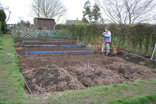 The ponds are full of frogspawn, the hedges are are froth of white blackthorn blossom and the new veg plot is coming along nicely, thanks to Jools.