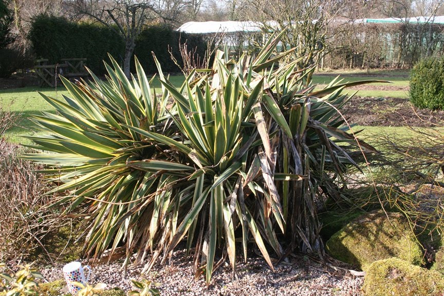 It is a fearful beast of a plant, each leaf ending in a terminal spike hard and sharp enough to spear leather with. Peter will wear gloves if need be, but won’t be seen dead in a pair of protective glasses. I’m not so proud – I’d rather keep my eyes intact, thank you.
