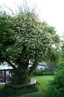 In the cottage garden near the house is a venerable old crab apple tree with a huge honeysuckle growing through it. In the evening the garden is bathed in scent, accompanied with the steady hum of a thousand deliriously happy bees.