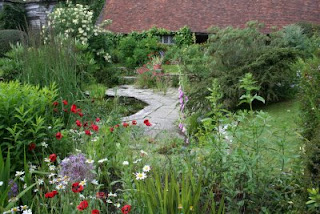 This is my favourite part of the garden, the sunken garden with its octagonal pond and rich, colourful planting in a beautiful Sussex farmhouse setting.