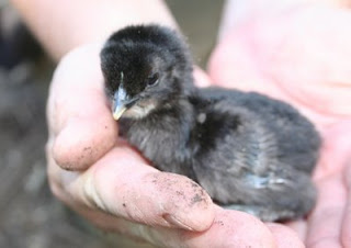 We moved the hen into the new coop along with her six chicks and all are doing great. She’s proving to be a superb surrogate mum. Three are light brown, three are dark grey, reflecting their Silkie/Marran parentage. So, here they are. I know, I know, other people’s baby pics are boring and they all look the same at that age…..
