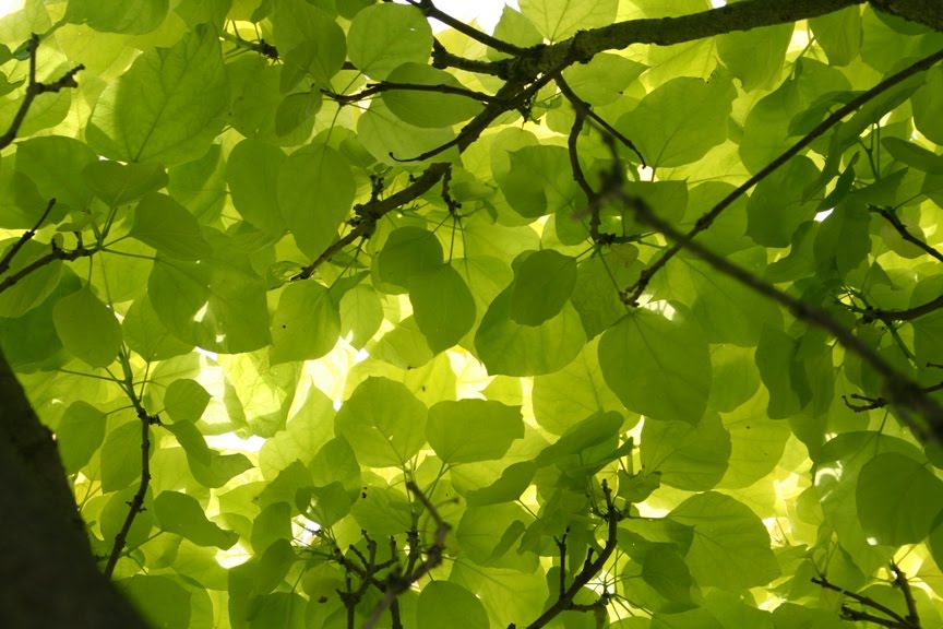 The light underneath this tree is quite magical. The leaves only emerge at the end of the branches, creating an almost perfect dome of gold leaves, filtering a rich honeyed light beneath it.