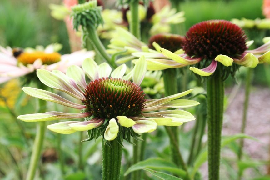 Much has been made of the comparative hardiness of Echinaceas lately. This is Green Envy. It’s been in the garden for two years, and come through two very cold winters – down to -15C. The soil is light, but even so, I’m impressed. The pale one behind it is Fragrant Angel which has also done well.