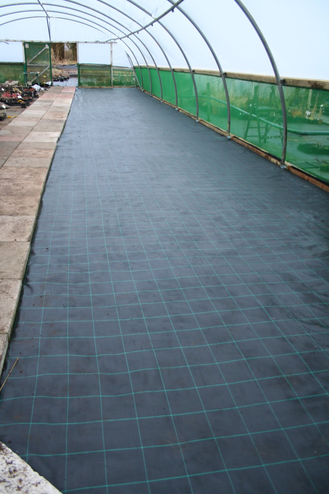 Well, I’m much happier now that I’ve got that out of my system. And much happier too that I’m off my backside and back in the nursery full time. The first delivery of 1500 bare root plants has arrived in fifty neat open-topped cardboard boxes. I am torn between delight at the prospect of their summer beauty and panic at the potting workload (it’s just the first batch…). Each box is packed tight with mounds of pert little shoots standing proud of a spidery tangle of bare and rapidly drying roots. For now the boxes are stacked up somewhat precariously in the tea room because it’s dark and cool in there. Tomorrow Janet and Sally start the marathon task of potting them up, so my job today was to lay a new floor in the back polytunnel ready for the newly potted plants to stand inside for a few weeks before facing the harsh world outside.