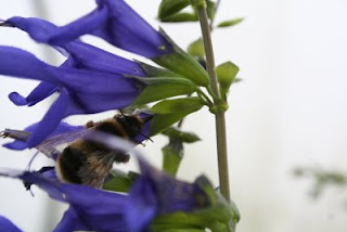 But most of next year’s plants will come from our own material and I’m collecting a rich harvest of plump seeds almost every day. Thousands of little parcels of promise either sown straightaway or filed away for next spring. I’ve retrieved several plants off the nursery for cuttings or seeds, set them aside and check them each time I pass. But I noticed that some of the slim-flowered Salvias I set aside for propagation seem not to have set much or any seed, and watching the bees come and go from them you can see why. I’m not sure what they are pollinated by in their native South America, but it can’t be bees like ours. They seem to have figured out how to get at the nectar without the bother of crawling into the flower….