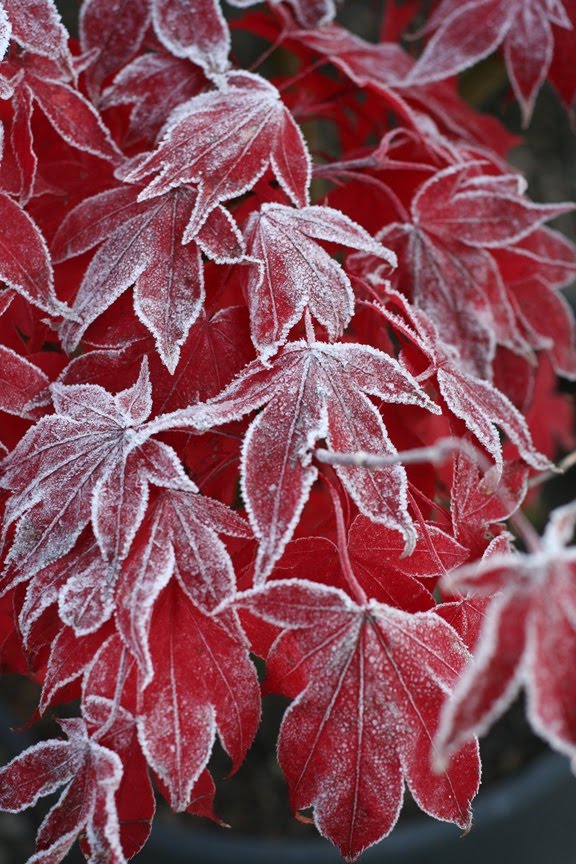 Talking of heating bills, we’ve had 6 proper frosts already this year and a whole load more to come this week. And it’s still November. OK, they are pretty, but we can’t get anything done when the ground is frozen. A good frost does reveal whether a border has good bones, though, and pleasingly I think this new one does. The other picture is Acer ‘Osakazuki’.